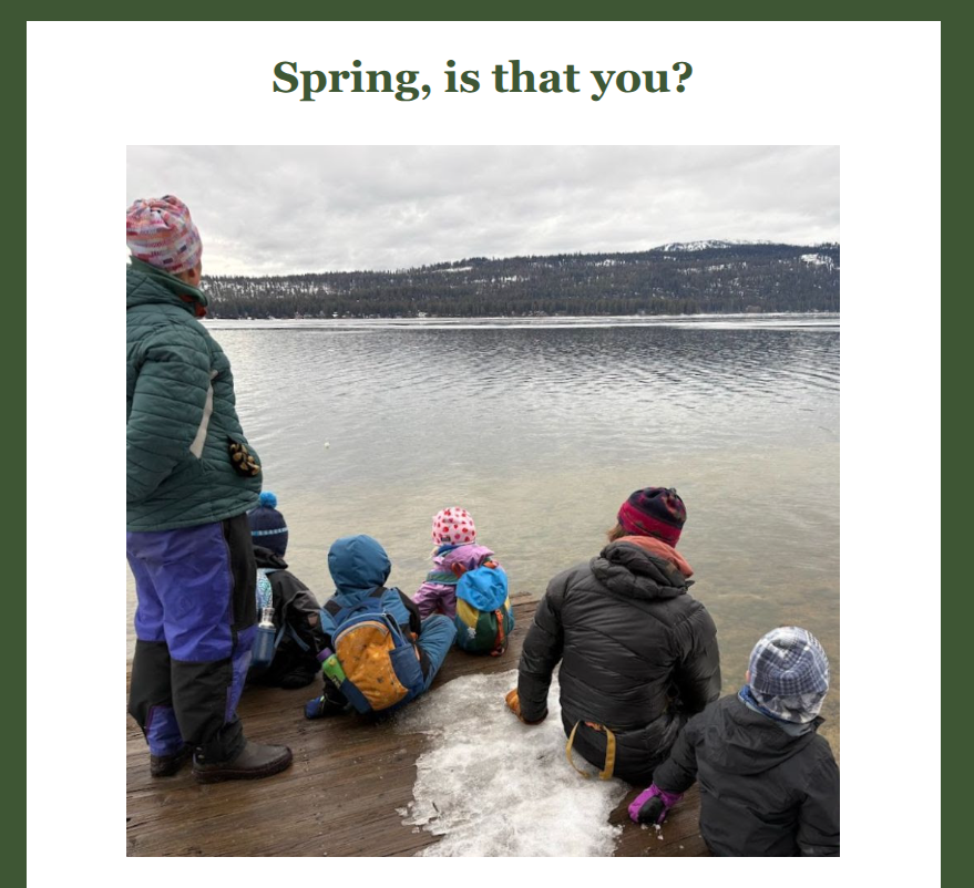 Signs of spring’s approach have been abundant here in the forest. A couple of Fridays ago, Ranger Amanda told the Pines teachers that she saw some tundra swans on the lake. The Pines took advantage of this information and hiked to the lake to observe these special visitors. Last week, students and teachers were on Spring Break and all are eager to get back into the classroom and see what’s changed.